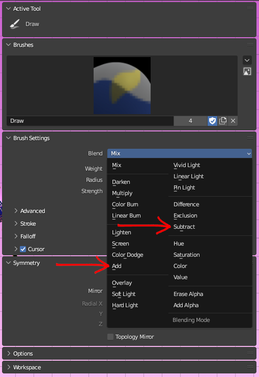 Change the Blend to add or remove influence. Make sure Symmetry is right.